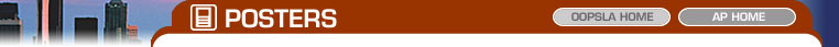 The Joint ACM SIGPLAN Student Research Competition and OOPSLA Poster SessionChair: Laurie Williams An exciting, new opportunityThe OOPSLA Poster Session has been extended to include the first ACM SIGPLAN Student Research Competition. The Poster Session is an excellent forum for presenting research in progress in order to obtain feedback from conference participants. The ACM SIGPLAN Student Research Competition shares the common goal of having students meet and interact with researchers so that both sides have the opportunity to learn of ongoing, current research. The Student Research Competition has the additional goal of the student gaining experience with both formal presentations and evaluations. Students wishing to participate in the Student Research Competition must submit a two-page abstract and a poster outline, following the regular Poster Session guidelines. These requirements can be found on the Poster Session Call For Participation page. However, when submitting their poster materials, interested students must indicate their desire to participate in the competition. The same applies to the Doctoral Symposium applicants if they wish to be considered for this competition. Submissions will be reviewed by a committee, and ten students will be chosen to participate in the competition. These students will discuss their work with competition judges (and conference attendees) during the regular Poster Session. The Poster session is used to evaluate the research on its quality, significance of the work, and the clarity of the informal discussion. Three semi-finalists chosen from this round of competition will present their research during a conference session. The Student Research Competition winners will be recognized prior to the keynote speaker, Bill Gates, on the last day of the conference. |