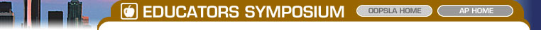 The Educators' Symposium provides a forum for object-oriented educators, both academic professors and industrial trainers, to meet and exchange ideas, experiences and resources. We have a programme of submitted posters and papers, which is set out below, but all attendees are encouraged to bring along their ideas and challenges, to pin them up alongside the posters, and to share their insights, frustrations and solutions with other attendees. You'll see that there is an hour put aside for viewing and discussing ideas displayed as posters, so there's plenty of time to obtain feedback. We will also hear reports from other conferences, workshops and projects related to object-oriented education that have happened throughout the year. But don't think you'll just be sitting back and listening. There are activities for you to join in with: a design review, and an invited session exploring activities to help you teach design patterns! We'll also be expanding your horizons by re-examining the way use cases are used and taught, and whether OO education has failed, and if so why? Please come and join us for a stimulating and thought-provoking day, in the best tradition of OOPSLA.